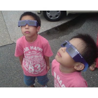 買ったサングラスをレンズにかぶせるだけで良いのか?観測するのに人に邪魔されずに写せる場所を探すとかまだ分からないだろうけれど孫達に日食がどうして起こるのか説明したりしばらく楽しんでみようと思います。5月21日午前7時半頃を覚えて置いてくださいね。運よく太陽の欠けて行く連続写真が撮れてここに投稿できたらうれしいのですが。そのとき晴れるように祈っています。